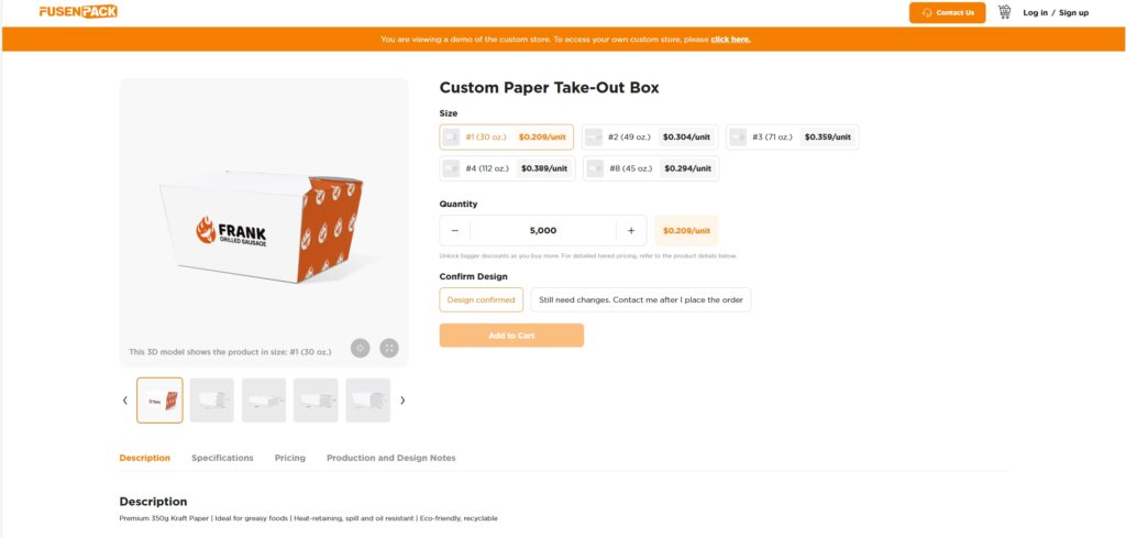 - Custom Paper Take-Out Box: Available in vibrant colors to match your branding.