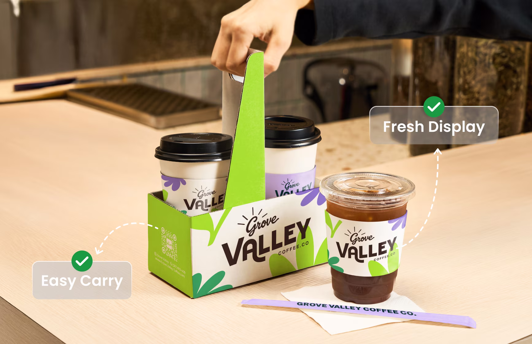 "This packaging helps us get through busy coffee rushes. The cups hold up well, and the carriers make takeout faster and cleaner. Our team moves faster with less mess."