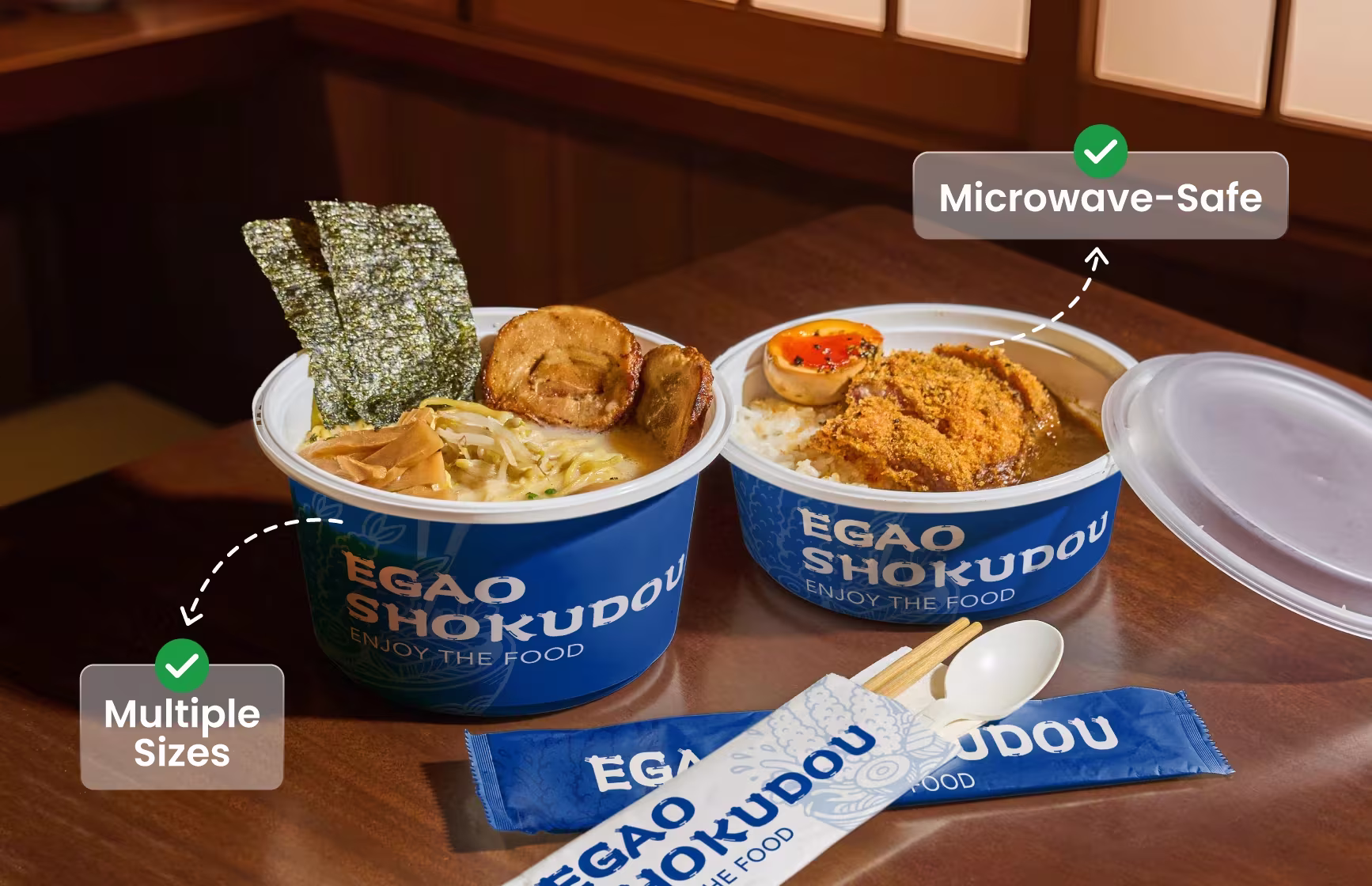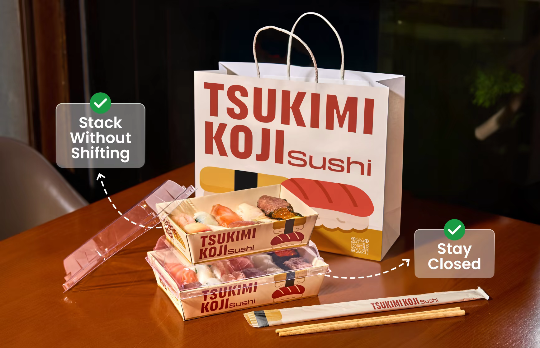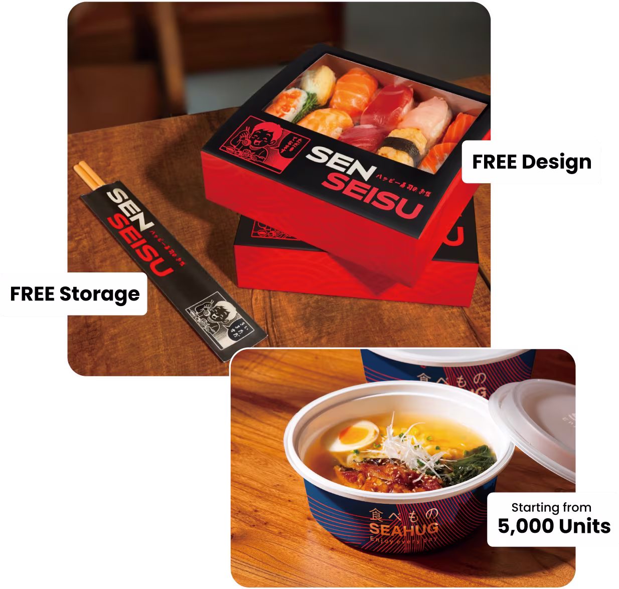 Custom packaging that starts small, perfect for independent sushi bars and growing Japanese restaurants.