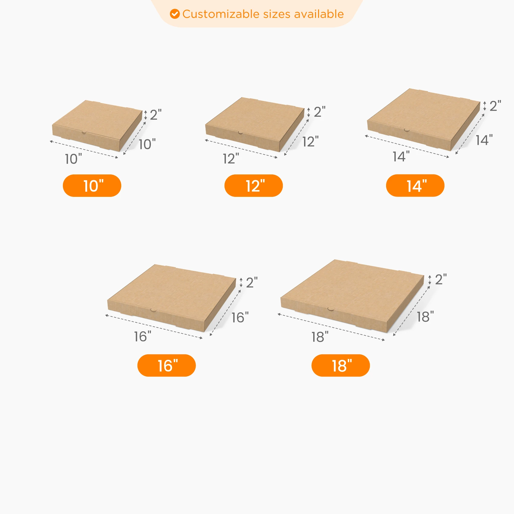 Our custom brown corrugated pizza boxes are tough and moisture-resistant. Whether it's thin crust or deep dish, your pizza stays intact in delivery.