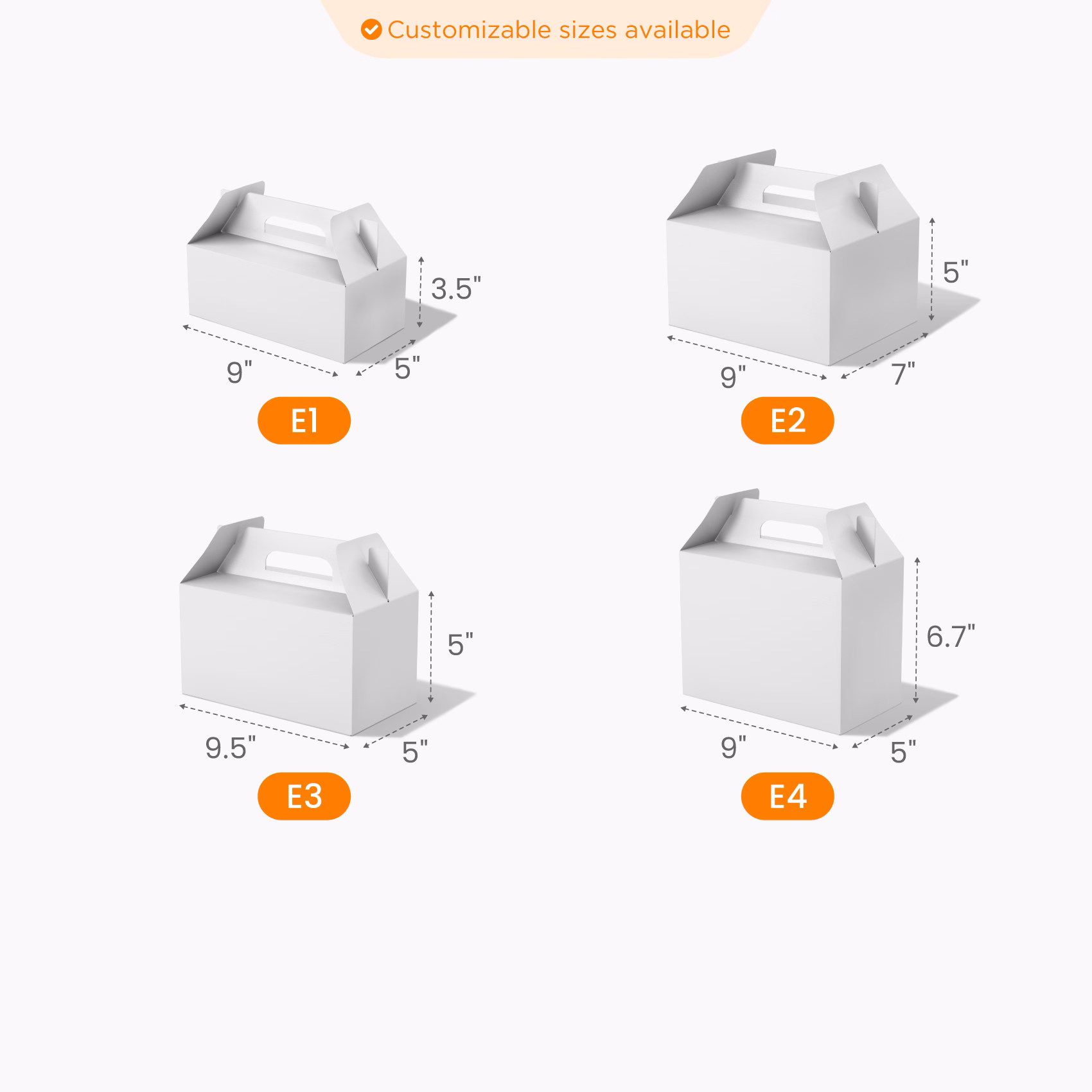 Available in various sizes, from cookies to cakes to fried chicken platters. Optional clear windows let customers see the food inside.