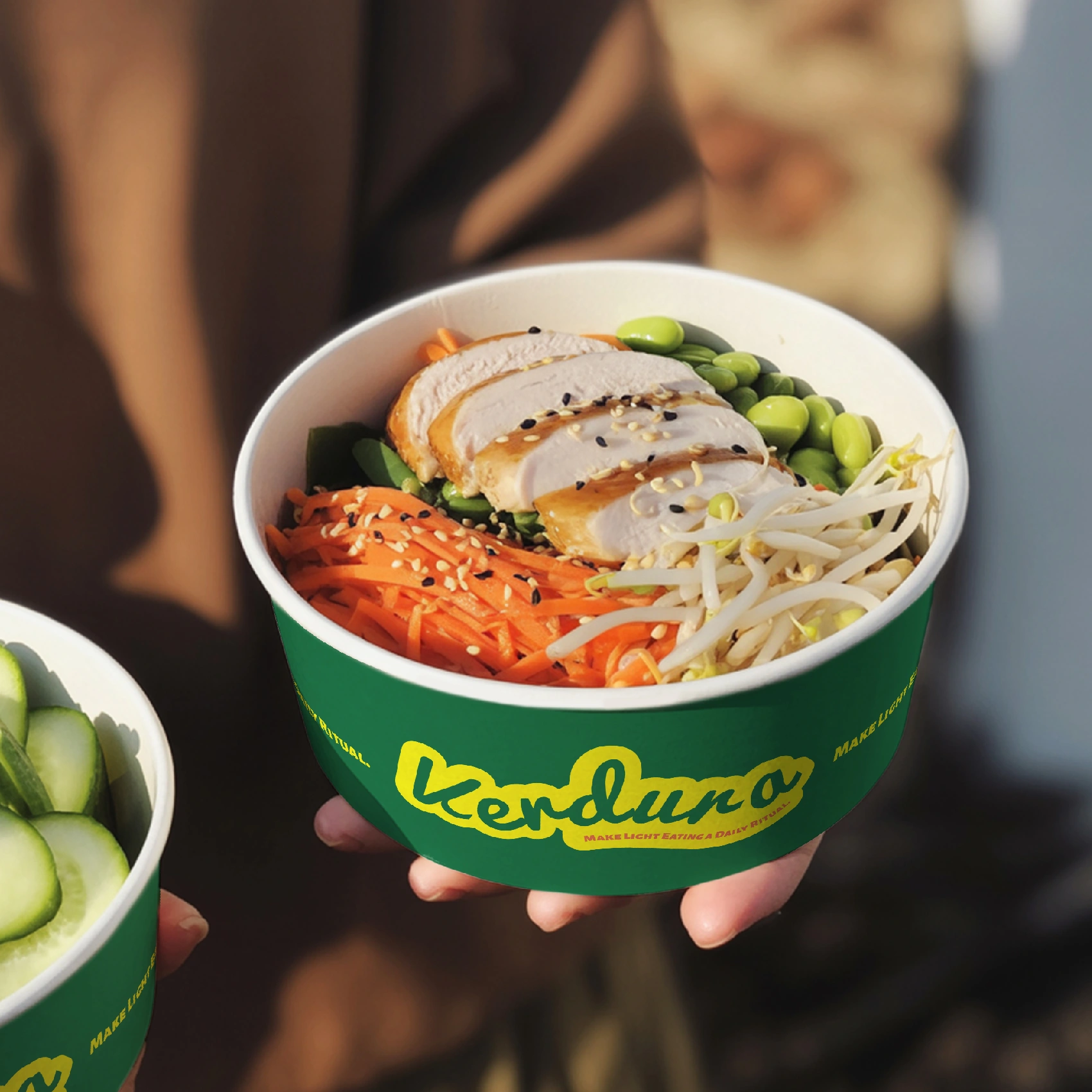 Our Custom Wide Paper Bowls let the vibrant colors and plating of salads and cold dishes shine while making it easy for customers to dig in or share.
